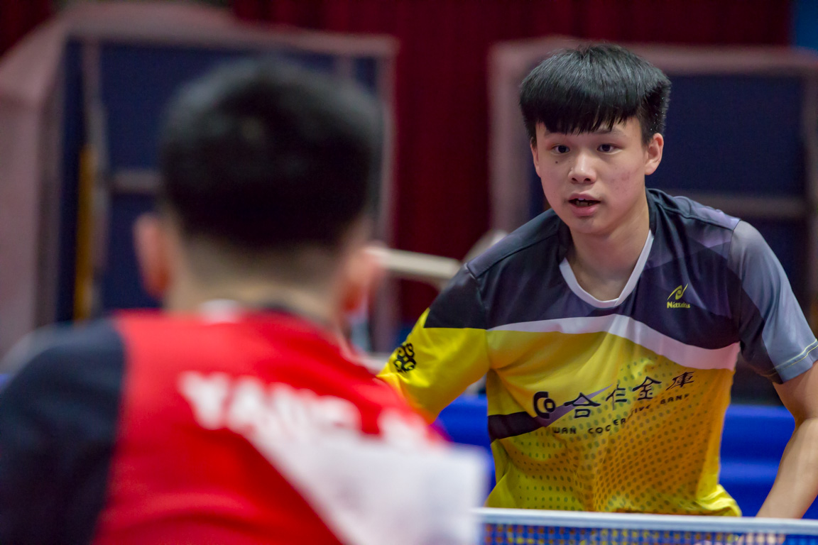 選手往前踏出一步,用力揮動球拍,「乓!」清脆的聲音宣告著比賽正式開始。108年全國桌球錦標賽男子組個人單打項目9日於高雄市鳳山區五甲國民小學舉行。冠亞戰由國立臺灣體育運動大學研究所學生廖振珽對戰台北市立松山高級商業家事職業學校學生馮翊新,最終廖振珽0:4不敵馮翊新,拿下亞軍。
